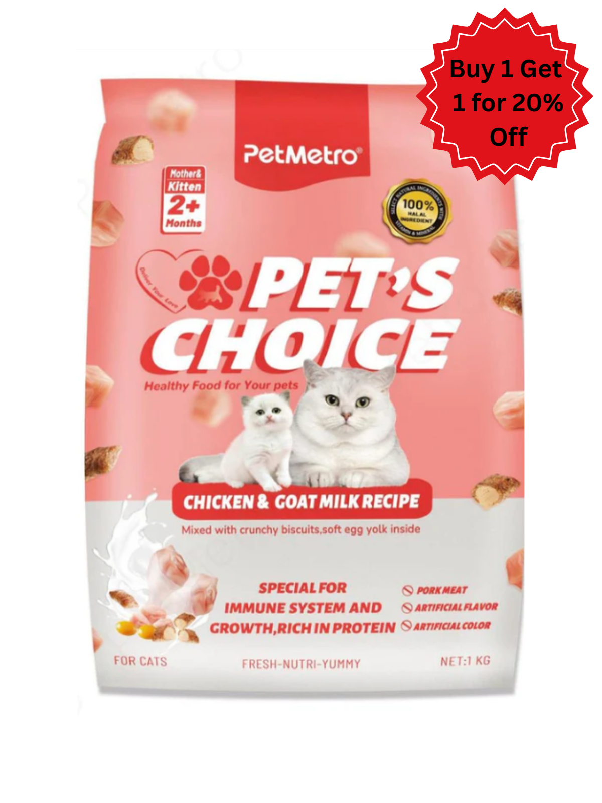 طعام بت مترو الجاف للقطط بنكهة الدجاج وحليب الماعز ١٠٪ مقرمش حجم العبوة ١ كجم